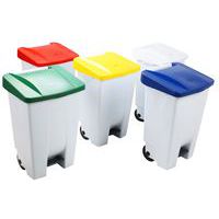 Pattumiera mobile Manutan Expert maneggevole, grazie a 2 rotelle lisce e alla maniglia per il trasporto. Apertura facile tramite il pedale frontale. Predisposta per la raccolta differenziata grazie ai coperchi colorati. Facile da pulire. Realizzato nell'UE Garanzia Cliente : 10 anni HACCP