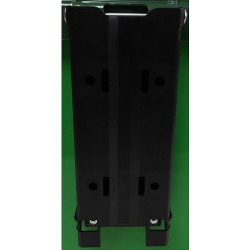 In polipropilene ad alta densità. Svuotamento facile grazie allo sgancio integrale del cestino. Apertura ridotta per limitare l'introduzione di oggetti voluminosi o pericolosi: 110 mm. Sistema di chiusura nascosto: chiave triangolare. Piastra in acciaio inox F17 che consente lo spegnimento delle sigarette, senza bruciare il cestino. Piastra di fissaggio posteriore in poliammide.