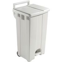 - Contenitore per raccolta rifiuti 90 LT con pedale realizzato in acciaio e coperchio in plastica grigia.