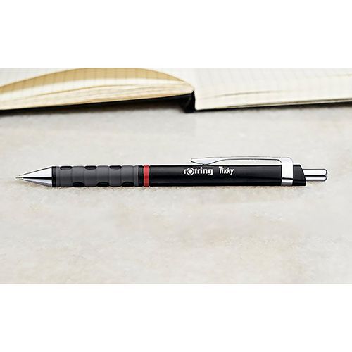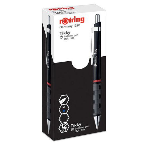 - Penna a sfera Rotring Tikky leggera con impugnatura in gomma corpo nero confezione da 12.