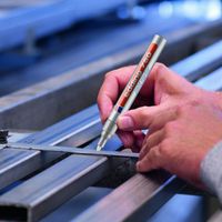 Pennarello a vernice - Edding 750 per una scrittura molto coprente e permanente anche su materiali scuri e trasparenti. Marcatura su metallo, vetro, plastica ecc.. e in particolare su tutte le superfici lisce. Asciugatura rapida della vernice e lieve odore. Resistente all'acqua, alla luce, al calore fino a 400°C (1000°C per alcuni colori come bianco, giallo, argento) e resistente all'abrasione. Erogazione dell'inchiostro controllata da valvola. Senza toluene/xilene.