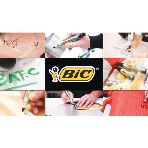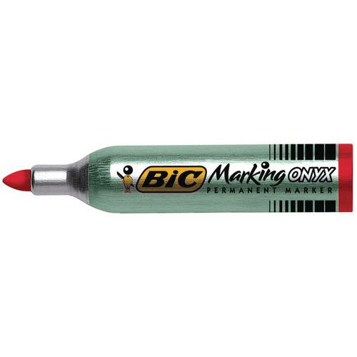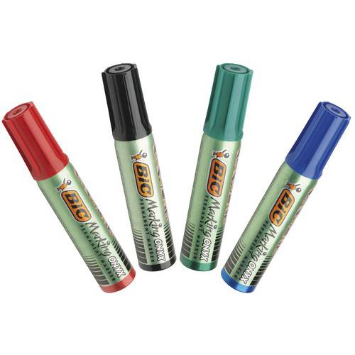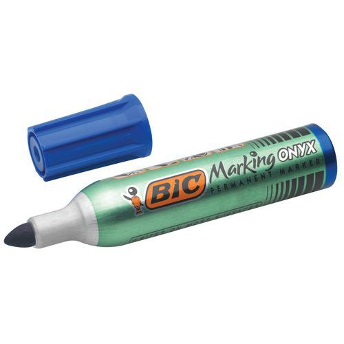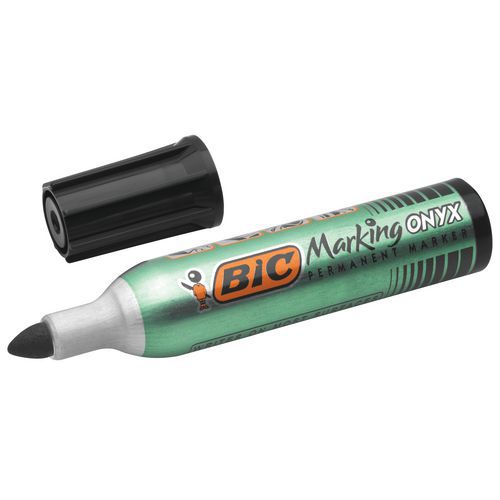 Il pennarello indelebile Bic Marking Onyx 1482 scrive in maniera leggibile sulla maggior parte delle superfici: vetro, legno, plastica, metallo, cartone.