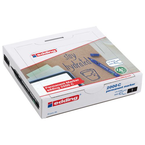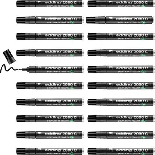 | Descrizione | Pennarello indelebile nero Edding 2000C, Inchiostro, colore: Nero, Tratto larghezza min.: 1.5 mm |