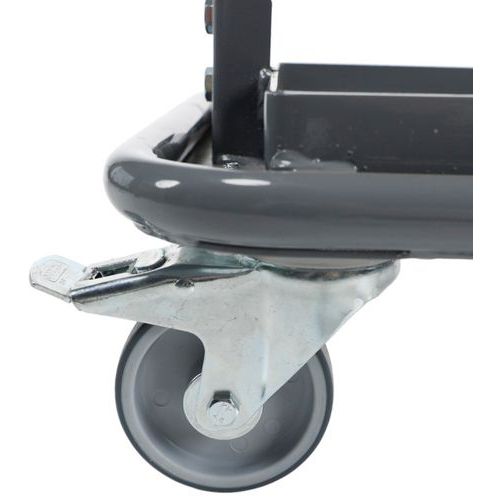 Ottimizzate le operazioni di prelievo e trasporto dei vostri contenitori di stoccaggio con il nostro carrello alto per contenitori. Capacità di carico: può sostenere un carico massimo di 250 kg. La sua struttura alta in acciaio consente un facile accesso ai contenitori, riducendo gli sforzi di movimentazione. Dotato di 2 ruote orientabili con freni e 2 ruote fisse, si sposta facilmente e in sicurezza nelle corsie. Ruote di qualità: le ruote con copertone in TPR (gomma termoplastica) offrono una guida silenziosa e una buona resistenza all'usura.