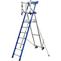 Piattaforma singola mobile in alluminio a elevata sicurezza ad altezza fissa. Apertura istantanea. Accesso con gradini antiscivolo. Installazione del parapetto con un solo gesto. Cancello a 2 battenti con chiusura di sicurezza automatica. 2 ripiani di serie con scomparti. Pianale più spazioso dotato di maniglia per facilitare l'apertura e la chiusura. Dimensioni chiusa ottimizzate. Facile da riporre e da spostare.