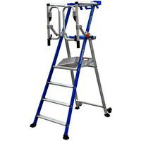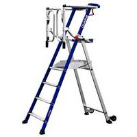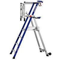 Piattaforma singola mobile in alluminio a elevata sicurezza ad altezza fissa. Apertura istantanea. Accesso con gradini antiscivolo. Installazione del parapetto con un solo gesto. Cancello a 2 battenti con chiusura di sicurezza automatica. 2 ripiani di serie con scomparti. Pianale più spazioso dotato di maniglia per facilitare l'apertura e la chiusura. Dimensioni chiusa ottimizzate. Facile da riporre e da spostare.