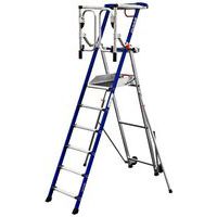 Piattaforma singola mobile in alluminio a elevata sicurezza ad altezza fissa. Apertura istantanea. Accesso con gradini antiscivolo. Installazione del parapetto con un solo gesto. Cancello a 2 battenti con chiusura di sicurezza automatica. 2 ripiani di serie con scomparti. Pianale più spazioso dotato di maniglia per facilitare l'apertura e la chiusura. Dimensioni chiusa ottimizzate. Facile da riporre e da spostare. Carico max. (kg) : 150 kg Garanzia Cliente : 5 anni