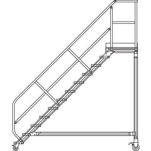 Spostamento facile. Piattaforma su ruote con protezione garantita da 2 corrimano e parapetti su 3 lati. Gradini fissati con viti.