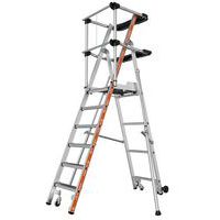 Veloce Lisses è la piattaforma di lavoro di riferimento. Leggera, compatta, ultra mobile, questa piattaforma si infila ovunque nei cantieri. Massima sicurezza: Veloce risponde a tutte le esigenze di sicurezza francesi ed europee. Comfort dell'utilizzatore: questa piattaforma è dotata di due ripiani rimovibili. Il ripiano basso ha una portata massima di 25 kg ed è dotato di uno spazio per contenere facilmente fusti di vernice o di materiali grossi. Parapetto rigido su 4 lati con correnti di protezione anticaduta con chiusura semi-automatica. Rotelle a scomparsa da 75 mm per una mobilità rapida e ottimale. Gradini antiscivolo 80 mm. Porta-attrezzi con scomparto rimovibile, portata 25 kg, con ganci integrati (max 10 kg). Pianale XL con portata di 25 kg. Pianale 500 x 400 mm antiscivolo in legno biologico con blocco automatico. Spazio di lavoro ergonomico. Stabilizzatori retrattili a regolazione millimetrica. Ruote per il trasporto Ø 100 mm (da 2 a 6 gradini), Ø 175 mm per la versione a 7 gradini.