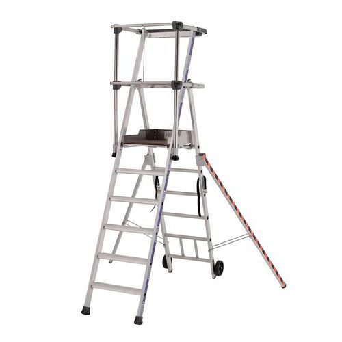 Piattaforma in alluminio con stabilità eccellente e ultra robusta, garanzia di elevata sicurezza. Nessun rischio di ribaltamento laterale grazie agli stabilizzatori, retrattili per passaggi stretti. Massima sicurezza con parapetto tubolare completo, rigido e semi-automatico a 360°. Portautensili nella parte anteriore, rampe laterali, rotelle e gradini. PIR-PIRL massimo comfort: ampia piattaforma e gradini striati antiscivolo. Stabilizzatori con regolazione millimetrica brevettata. Robustezza: montanti a U ultra-resistenti. Zoccoli integrati altezza 120 mm. Prodotto realizzato in Francia.