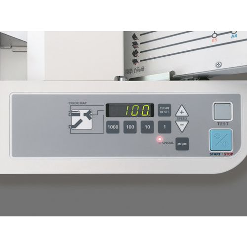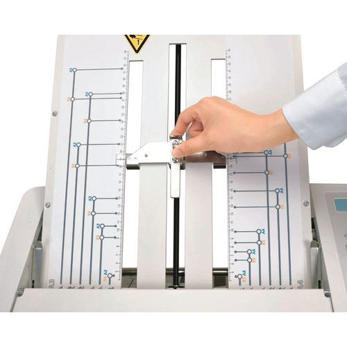 | Per formati | Da B7 a A3Modalità standard: da 40 a 180 fogli A4 al minuto Modalità « riduzione del rumore »: 60 fogli A4 al minuto Modalità « carta spessa »: 60 fogli A4 al minutoModalità « rapida »: 240 fogli A4 al minuto (per una piegatura semplice) |