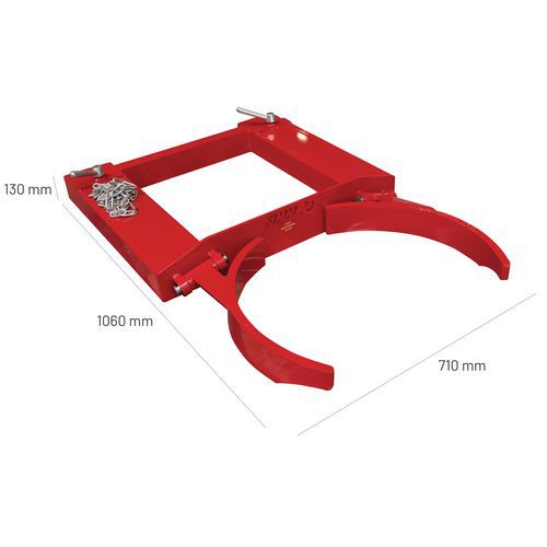 | Descrizione | Pinza a granchio per fusti in metallo, Capacità (n.di fusti): 1, Portata: 680 kg, Presa del fusto: Verticale |