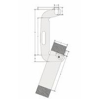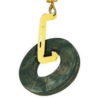 Pinza di ribaltamento per il sollevamento e il ribaltamento di bobine e svolgitori. La pinza è munita di una soletta articolata che permette di ribaltare la bobina. La soletta funge anche da aggancio di sicurezza durante il trasporto orizzontale del carico. Fabbricazione in acciaio legato ad altissima resistenza anti-invecchiamento. Maniglia di guida per la sistemazione facile del carico.