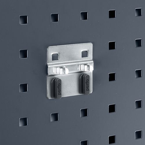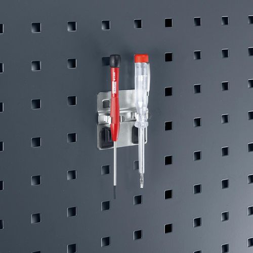 Per appendere gli attrezzi in tutta semplicità. Modello robusto spesso 6 mm. Fissate il supporto al pannello in un attimo grazie alle clip di sicurezza in plastica.