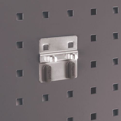Per appendere gli attrezzi in tutta semplicità. Modello robusto spesso 6 mm. Fissate il supporto al pannello in un attimo grazie alle clip di sicurezza in plastica.