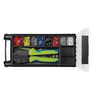 - Per la crimpatura costante e precisa di connettori meccanici, elettrici ed elettronici. Perfetto posizionamento del filo sul terminale. Le impronte di crimpatura sono posizionate per fornire una buona visibilità all'utente durante l'inserimento del connettore e del filo. Un sistema di sgancio consente il cambio rapido delle matrici, senza attrezzi speciali. Semplificati la vita con questo strumento ergonomico e compatto che ti permette di avere un'unica pinza e matrici in ordine nel loro supporto modulare. Ideale per tutti gli installatori o manutentori che vogliono alleggerire la propria cassetta degli attrezzi e risparmiare tempo durante l'intervento. Composto da: - 1 pinza crimpatrice 821416. - 4 matrici (821461 - 821462 - 821463 - 821469). - 1 spelafili Swingo® 793936. - 1 spelacavi 985956. - Scatola di plastica BP.MBOXM. - Piano schiuma PM.819810.