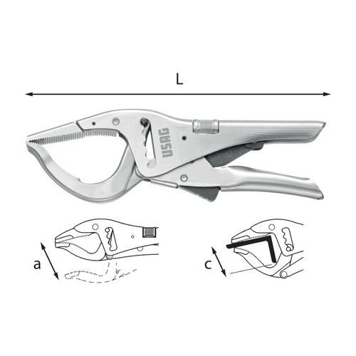 Pinza regolabile autobloccante a cremagliera con ganasce
