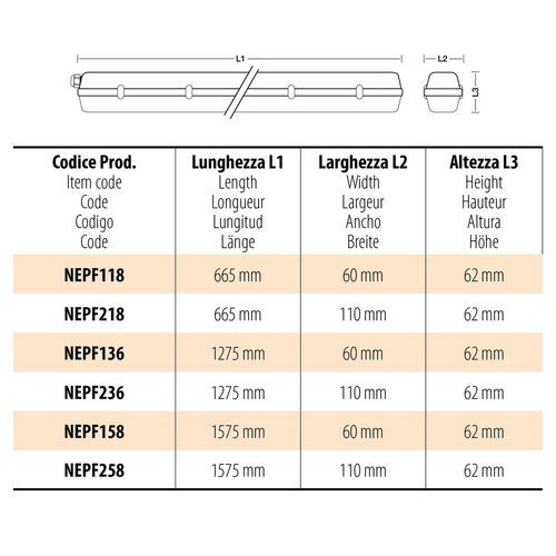 | Descrizione | Plafoniera per esterni impermeabile per tubo led 60 cm, Flusso luminoso: 0 lm |