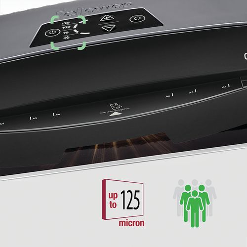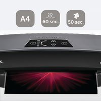 Pronta per la plastificazione in 60 secondi con tecnologia InstaHeat. Plastifica i documenti fino al formato A3 da 80 a 125 micron. Velocità di plastificazione massima di 50 secondi per una busta da 80 micron. Sistema di inversione automatica che consente il riallineamento della busta in caso di inserimento errato o inceppamento. Stand-by automatico dopo 30 minuti d’inattività.