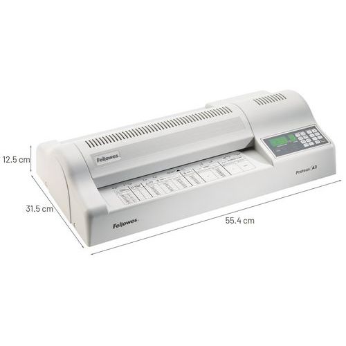 | Descrizione | Plastificatrice Fellowes Proteus A3, Formato documento: 297 x 420 mm (A3) |