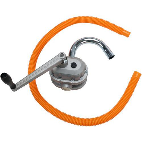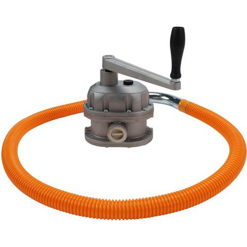 Pompa rotativa per liquidi a bassa viscosità. Portata calibrata di 1 L per rotazione, questa pompa offre una precisione cruciale per il dosaggio e il riempimento di contenitori piccoli o medi. Per liquidi a bassa viscosità senza solventi o kerosene Corpo della pompa in alluminio e tubo pescante in acciaio.