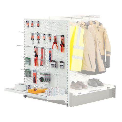 - Parete metallica perforata da fissare alle estremità delle scaffalature a gondola.