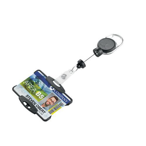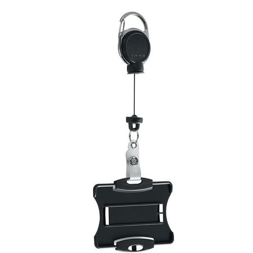 | Descrizione | Porta-badge aperto con avvolgitore ultra resistente, Tipo: Porta-badge, Colore: Nero, Lunghezza: 135 mm |