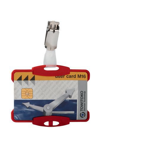 Porta-badge aperto con clip, Tipo: 1 tessera, Colore: Rosso, Tipo fissaggio: Con clip, Lunghezza: 85 mm