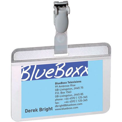 | Descrizione | Porta-badge autoplastificabile, Colore: Grigio, Tipo fissaggio: Clip, Lunghezza: 90 mm, Altezza: 54 mm |