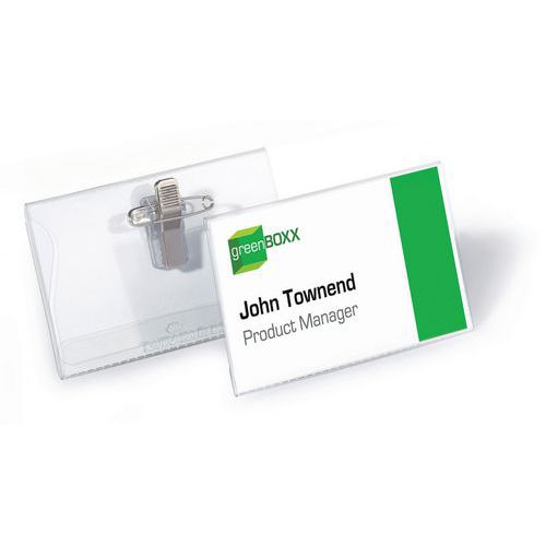 | Descrizione | Porta-badge con pinza Combi, Colore: Trasparente, Lunghezza: 90 mm, Altezza: 54 mm, N. di pezzi: 50 |