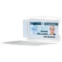 Il porta-badge di accesso senza accessorio di Durable è pensato per due tessere. Un design intramontabile ed essenziale che riduce l'uso di materiali offrendo durata e praticità. Dotato di apertura laterale per rimuovere facilmente le tessere. Compatibile con una catena, un porta-badge retrattile o un lanyard in tessuto per un utilizzo polivalente. Dimensioni interne di 54 x 85 mm. Utilizzabile nel formato verticale o orizzontale.