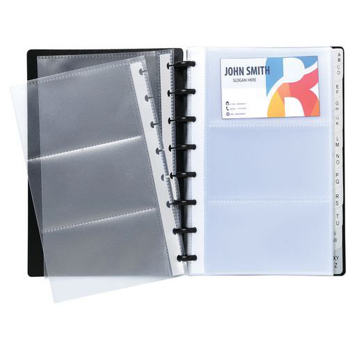 | Descrizione | Porta biglietti da visita con anelli e bustine staccabili A5 |