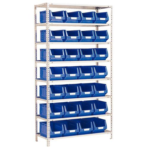 - Scaffalatura speciale per contenitori conformi alla norma europea 400x300 e 600x400 mm. Adatta a tutti i contenitori a norma europea con altezza massima di 230 mm. Montaggio facile ed estensione agevolata con l'aggiunta di elementi successivi. Crociere non incluse.