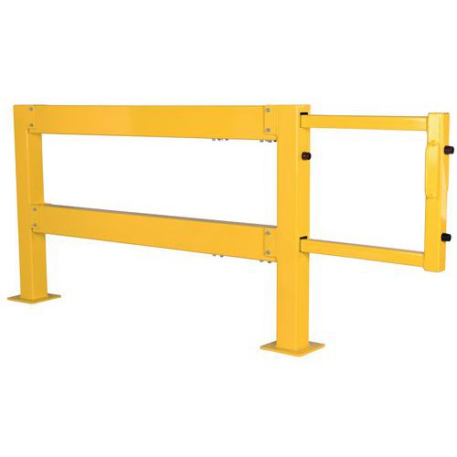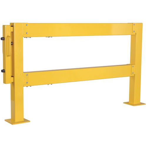 Sistema modulare per la protezione delle aree del vostro magazzino. Porta scorrevole con apertura e chiusura semplice e sicura grazie alle sue maniglie. Buona visibilità grazie al suo colore di segnalazione giallo. Facile installazione su piastra 200 x 200 mm con 4 fori. Certificato TÜV.