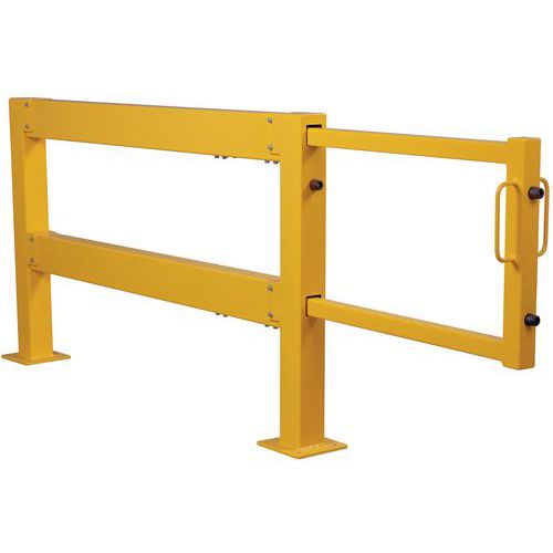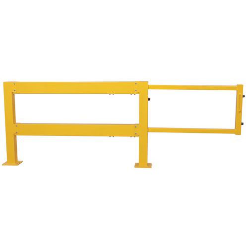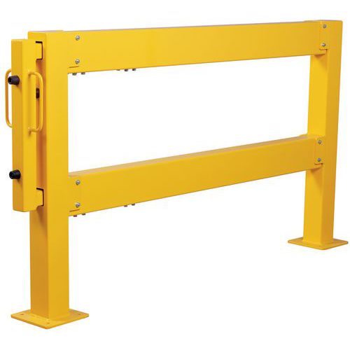 Sistema modulare per la protezione delle aree del vostro magazzino. Porta scorrevole con apertura e chiusura semplice e sicura grazie alle sue maniglie. Buona visibilità grazie al suo colore di segnalazione giallo. Facile installazione su piastra 200 x 200 mm con 4 fori. Certificato TÜV.