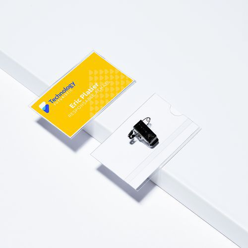 Questi portabadge combinati permettono di identificare i dipendenti dell'azienda, i visitatori esterni che si presentano alla reception o i partecipanti agli eventi.