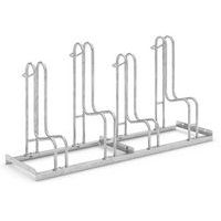 Portabiciclette 4000 a uno o due lati poco ingombrante grazie all'alternanza delle posizioni basse e alte degli archi con una distanza di 350 mm. Struttura robusta in acciaio con archi tubolari imbullonati stabili. È possibile collegare più portabiciclette e ancorarli a terra. Distanza degli archi per le biciclette con larghezza degli pneumatici fino a 55 mm. Profondità dello spazio di stazionamento di circa 1850 mm.