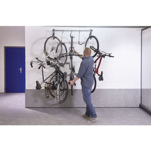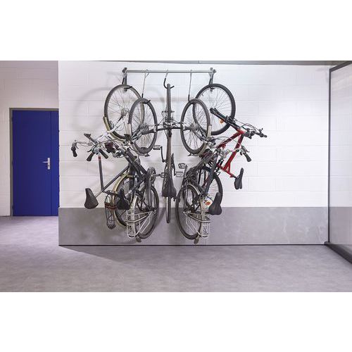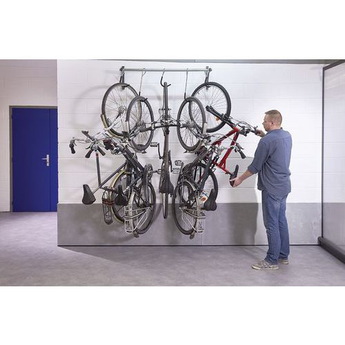Portabiciclette da parete scorrevole con ganci, capacità 5 biciclette.