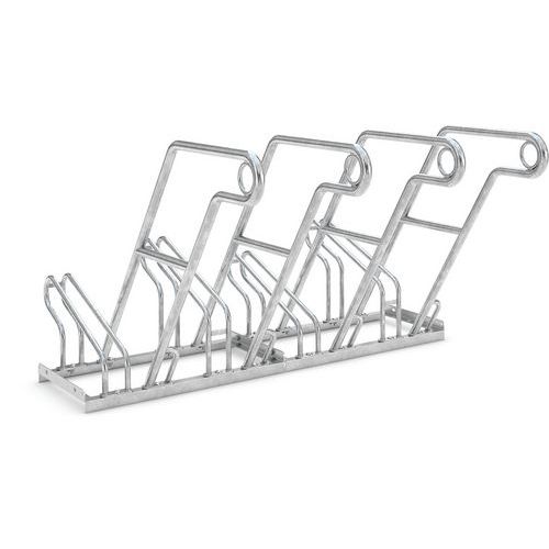 Portabiciclette modello 2600 a ingombro ridotto. Offre supporti confortevoli e uno spazio di stazionamento sicuro. Dotato di occhielli in acciaio per proteggere le biciclette da rischi di furto. Resistente alle intemperie. Finitura galvanizzata di qualità.