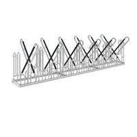 Portabiciclette moderno. Con archetti estremamente sicuri per proteggere le biciclette da furti. Resistente alle intemperie. Finitura galvanizzata di qualità, non rovina cerchi e ruote. Supporti di fissaggio al suolo inclusi.