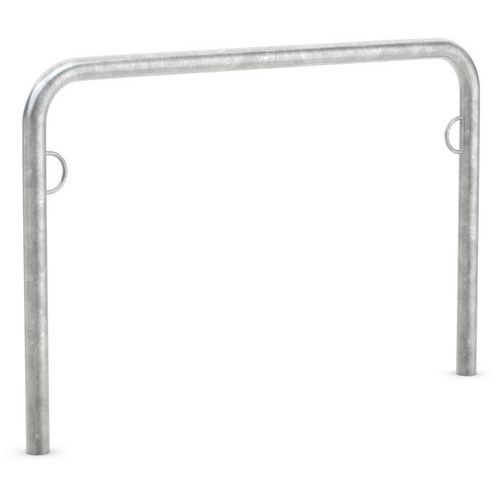 Portabiciclette ad arco da fissare nel cemento. Offre alla bicicletta uno spazio di stazionamento confortevole e sicuro. Le biciclette si fissano facilmente tramite occhielli in acciaio integrati su ciascun lato. Resistente alle intemperie. Finitura galvanizzata di qualità.