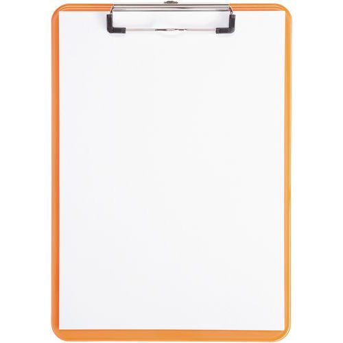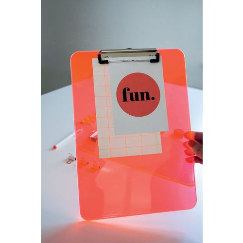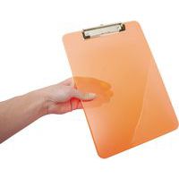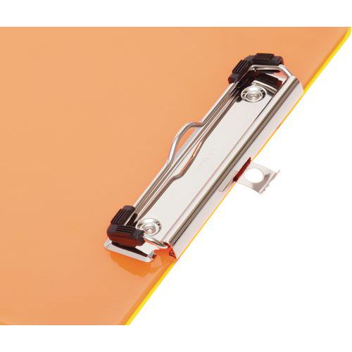 Portablocco A4 neon in PS trasparente, verticale con pinza fermafogli., Colore: Arancione
