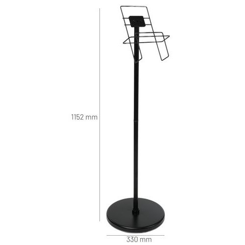 | Descrizione | Portabrochure A4 su base in acciaio nero, N. di ripiani: 1, Colore: Nero, Larghezza totale: 330 mm |