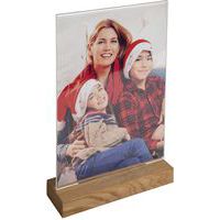Portadépliant con base in legno, Materiale: Acrilico, Colore: Trasparente, Altezza totale: 330 mm