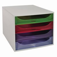 | Descrizione | Portadocumenti a cassettiera, Materiale: Polipropilene, Colore: Colori assortiti, Modello: Ecobox |