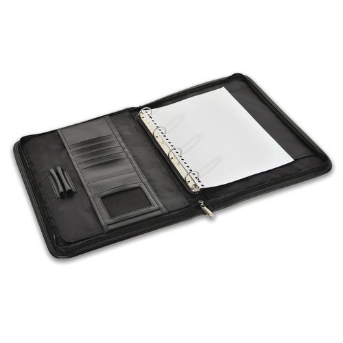 | Descrizione | Cartella portadocumenti per conferenza A4 con raccoglitore ad anelli 25 mm, Materiale: Finta pelle |
