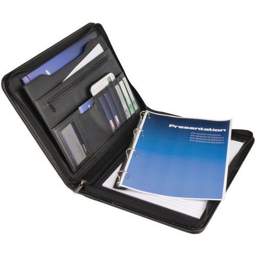 | Descrizione | Cartella portadocumenti per conferenza A4 con raccoglitore ad anelli 25 mm, Materiale: Finta pelle |