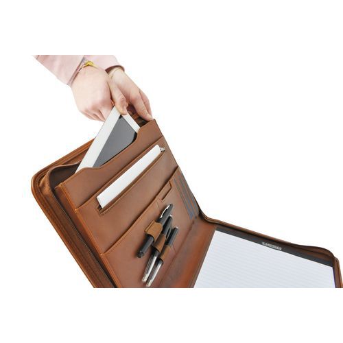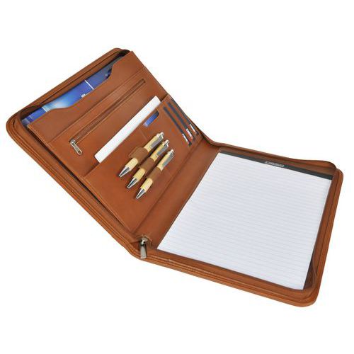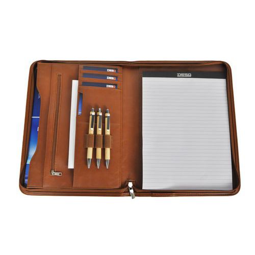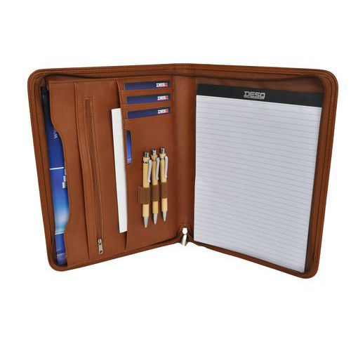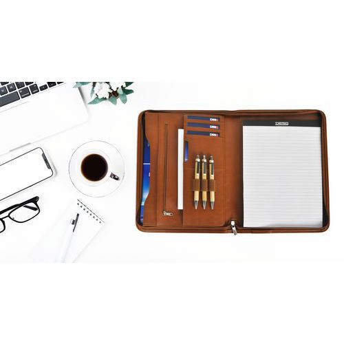 Portadocumenti per conferenze A4 con zip marrone - Desq