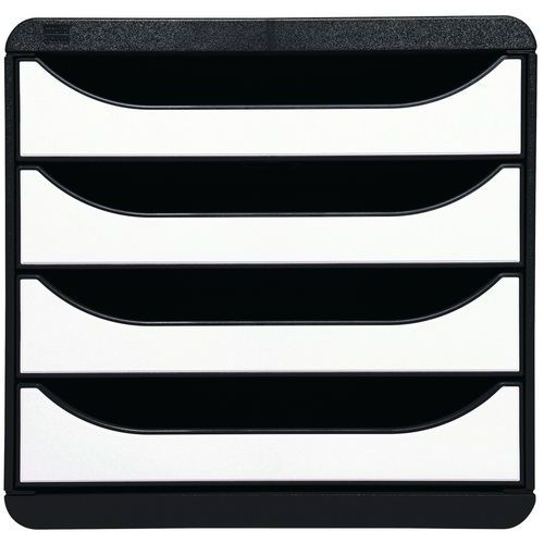 Portadocumenti singolo 4 cassetti BIG-BOX, Materiale: Polistirene, Colore: Bianco/nero