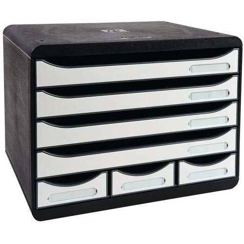 - Portadocumenti singolo 7 cassetti, 4 cassetti per documenti in formato A4+ e 3 cassetti più compatti per riporre materiale da ufficio e scrivania.